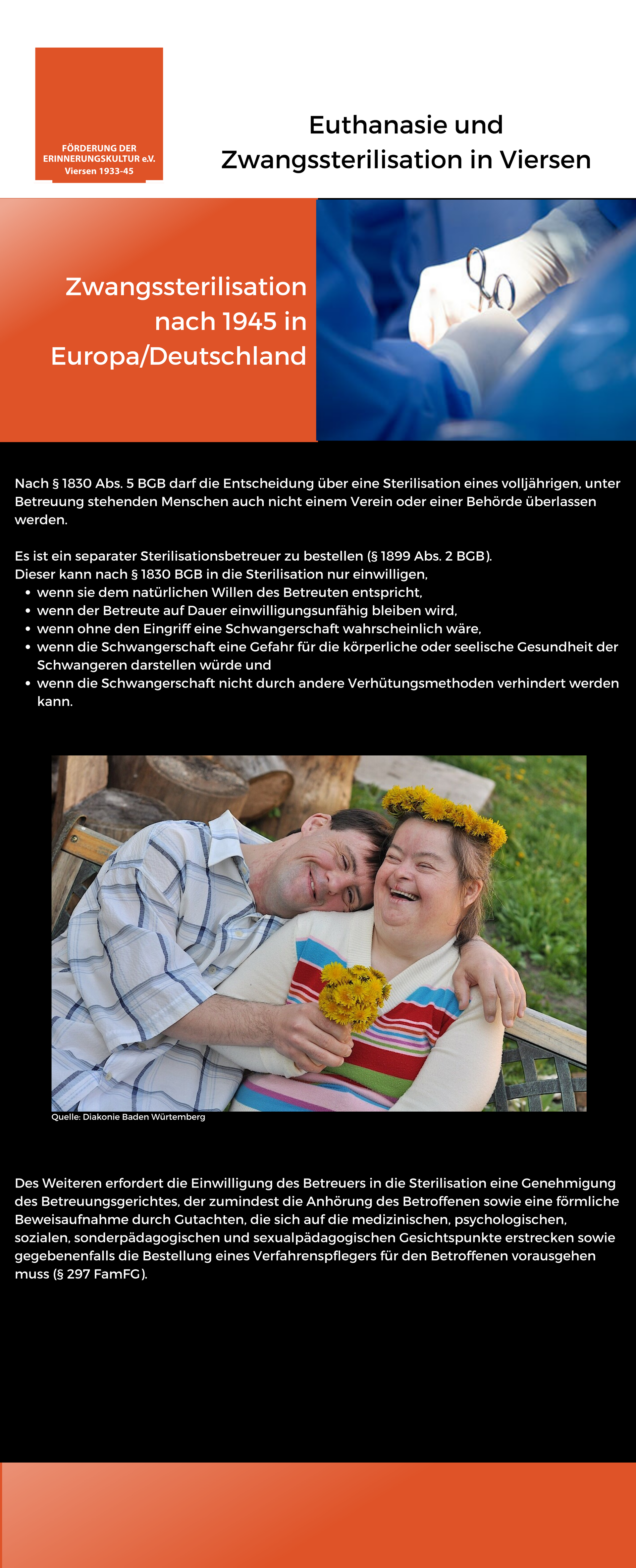 Zur Verhinderung des im Nazijargon bezeichneten „erbkranken Nachwuchses“ wurden Menschen in fortpflanzungsfähigem Alter zwangsweise sterilisiert.