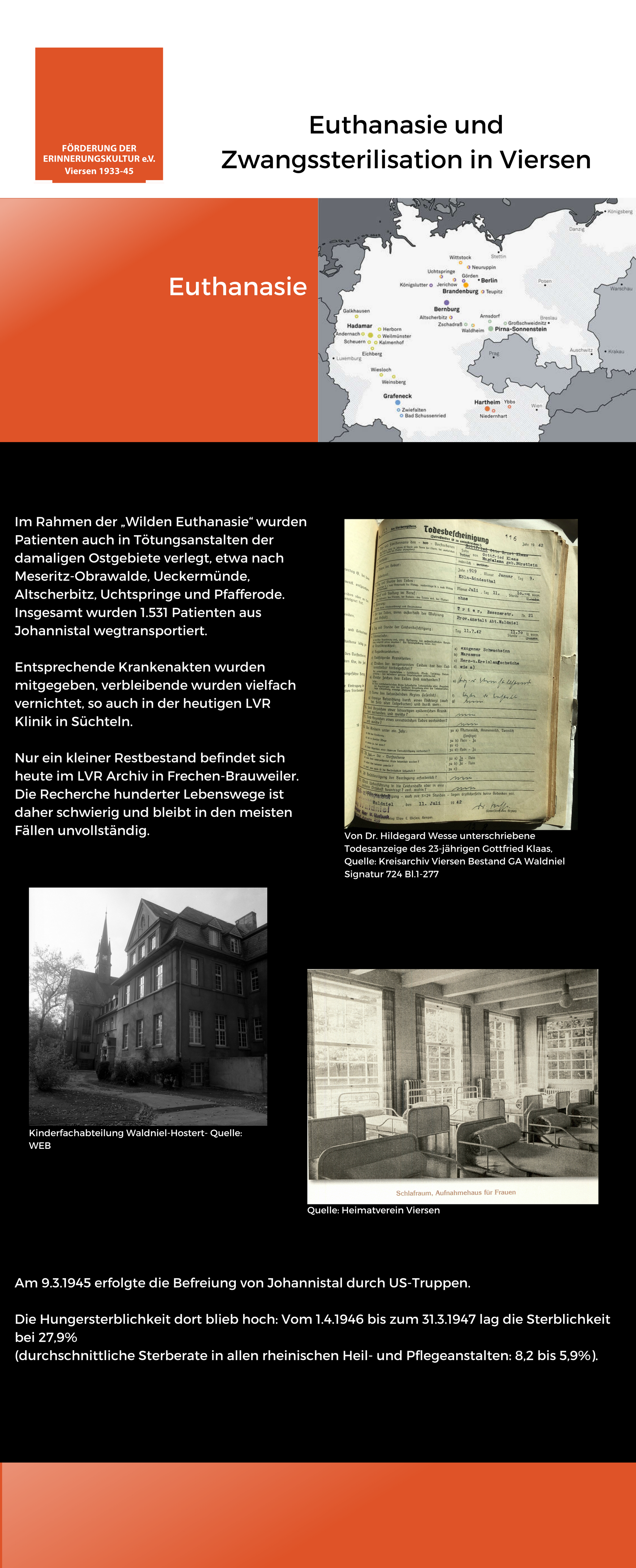 Die Provinzial-Heil- und Pflegeanstalt Johannistal (die heutige LVR-Klinik in Süchteln) und deren Außenstelle in Waldniel-Hostert sowie das Allgemeine Krankenhaus Viersen waren an diesen Untaten beteiligt.